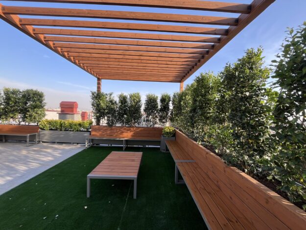 مشخصات کلی: عنوان پروژه: روف گاردن متراژ پروژه: 150 متر مربع محل پروژه: تهران، خیابان سازمان آب کارفرما: جناب مهندس امیری مقدم توضیحات: در این پروژه، اجرای روف گاردن با استفاده از سیستم پرتابل مدولار انجام شده است. اجزای اصلی شامل فلاورباکسها، نیمکتها و سازههای چوبی در کارگاه طراحی و تولید میشوند و سپس به…